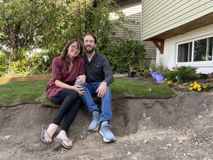 In an effort to cut down on their energy consumption, the Shannons have had their yard dug up to put in a geothermal heating system.