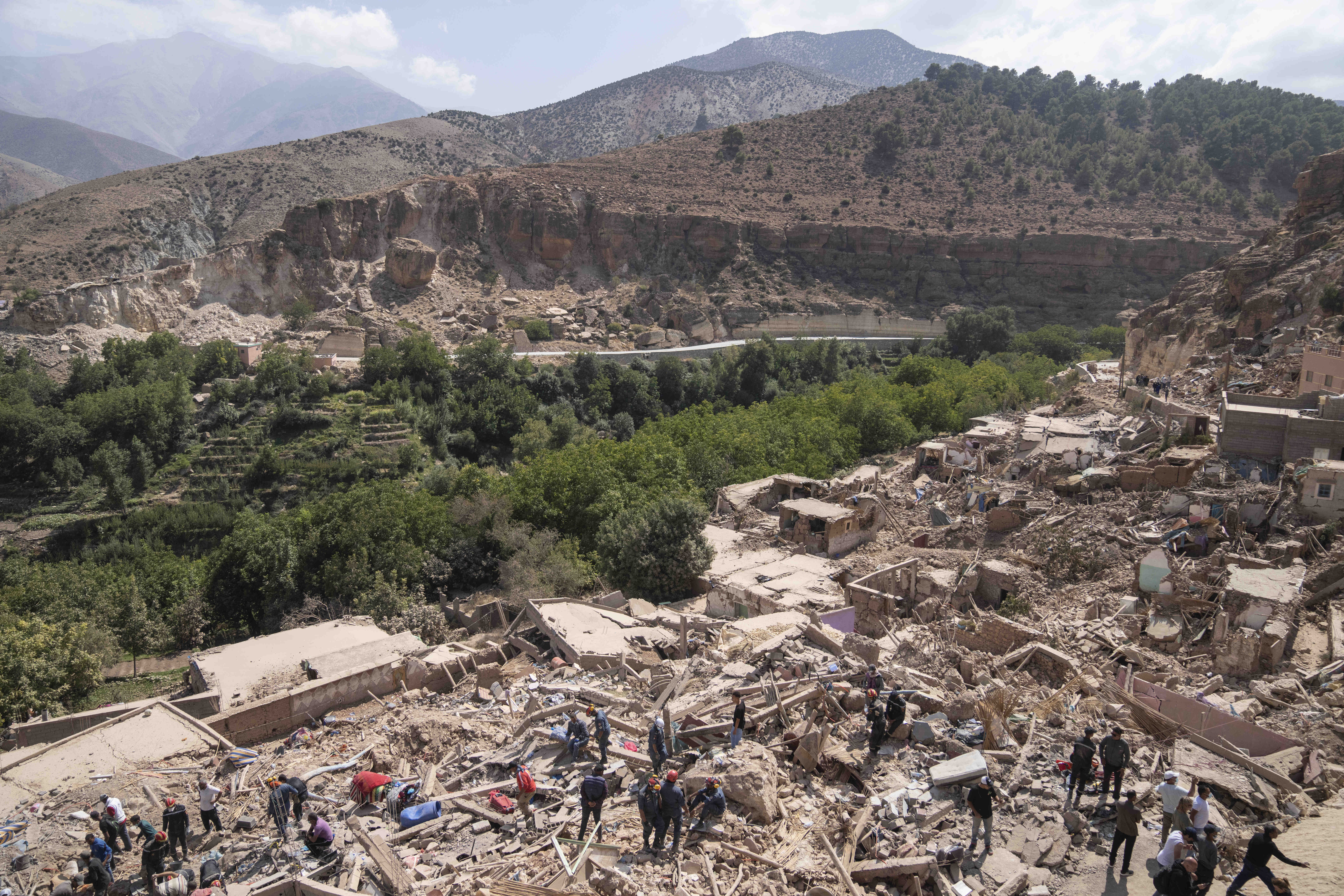 “The mountain was split in half and started falling. Houses were fully destroyed,” Ait Ougadir Al Houcine said as rescuers worked on recovering bodies, including his sister’s. “Some people lost all their cattle. We have nothing but the clothes we’re wearing. Everything is gone.”