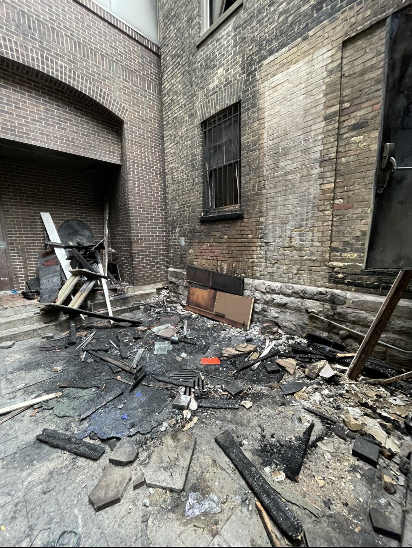 The fire broke out in a back alley on the northeast side of the church. The blaze, spreading quickly to the nearly 200-year-old structure, smashing windows and travelling up a stairwell three floors. The Maggie’s space was hardest hit.