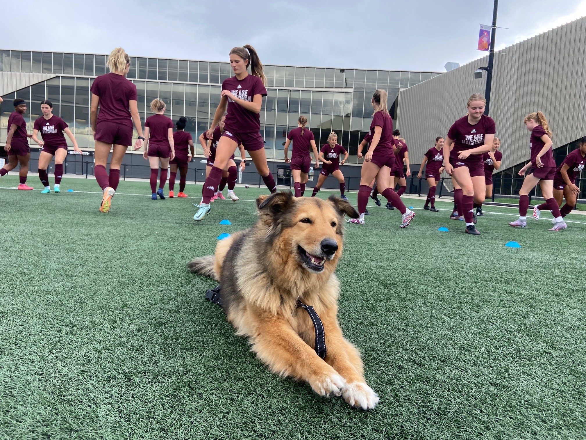 “It’s such a busy thing to balance school and soccer, so to come to train — and even to have just a five-second break with Dianne — to just pet her and hangout is a mental stress relief,” Supina said.