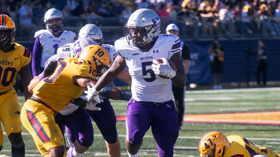 Western got a big play on the first Queen’s drive of the second half. The Gaels drove to the Mustang 20-yard line, and Vreeken dropped back to pass. Defensive back Jackson Findlay did not bite on play action and stepped in front of a pass. Findlay intercepted the ball and returned it 95 yards for a touchdown and a 22-11 Western lead.