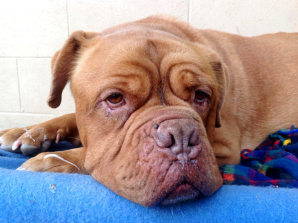 Napoleon was tied to a tree for most of his life without adequate food, water or shelter. He now needs a major dental surgery as well as entropion surgery, an extremely painful condition where the eyelashes grow into the eyes, on both lower lids.