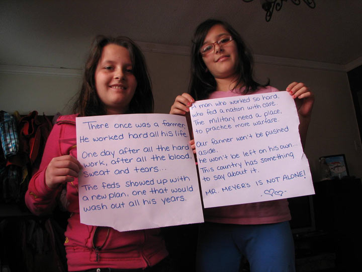Meanwhile, Meyers is quickly gaining support: the “Stop the Harper government and the DND from taking the Meyers Farm” online petition has earned more than 5,400 signatures, and a Facebook group to save the farm includes photos of support (in the gallery above) from farming communities across Ontario.