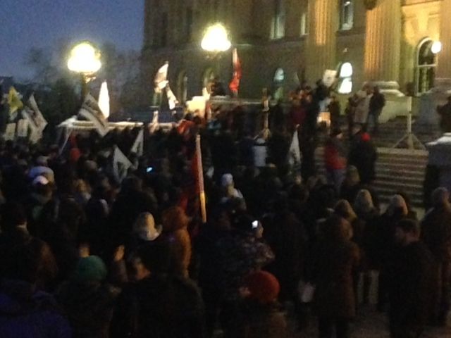 Members of the AUPE – which represents almost 80,000 Alberta workers – rallied on the steps of the legislature Thursday afternoon, after coming together for a similar protest on Wednesday.