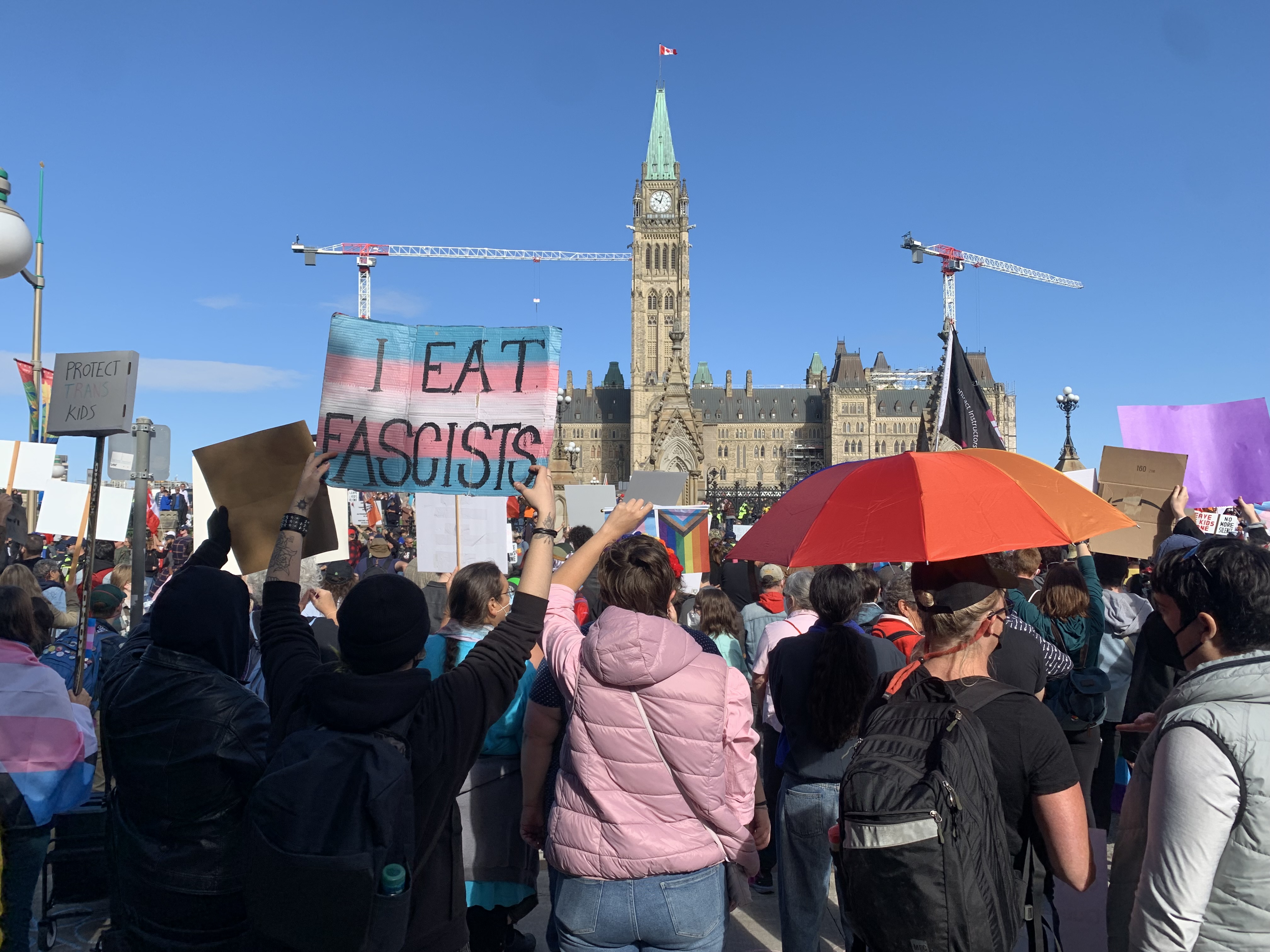 A heavy police presence separated the protesters from counter demonstrators in Ottawa, with competing chants about protecting trans youth and keeping gender ideologies out of schools. This included a temporary closure of Wellington Street, just outside of parliament.