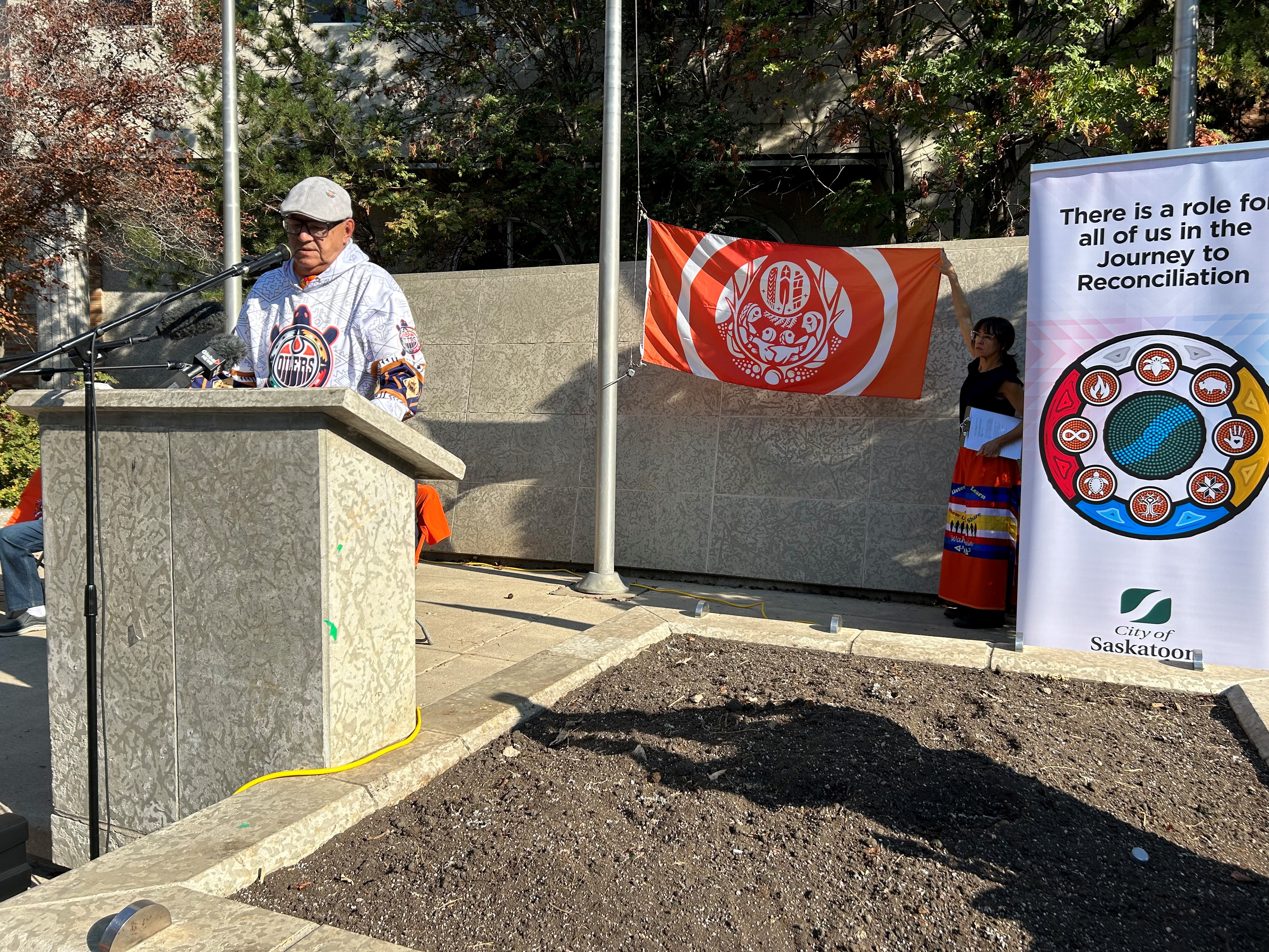 That was from Saskatoon Tribal Council Tribal Chief Mark Arcand, who was one of the speakers at the annual raising of the Survivors’ Flag that took place at Saskatoon’s civic square on Monday ahead of the National Day for Truth and Reconciliation.