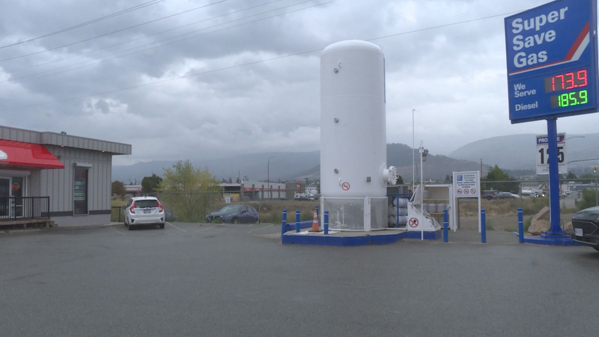 Gas station employees declined to comment; however, the damage is believed to be from the victim’s vehicle which almost collided with the propane storage tank at the gas station during the incident.