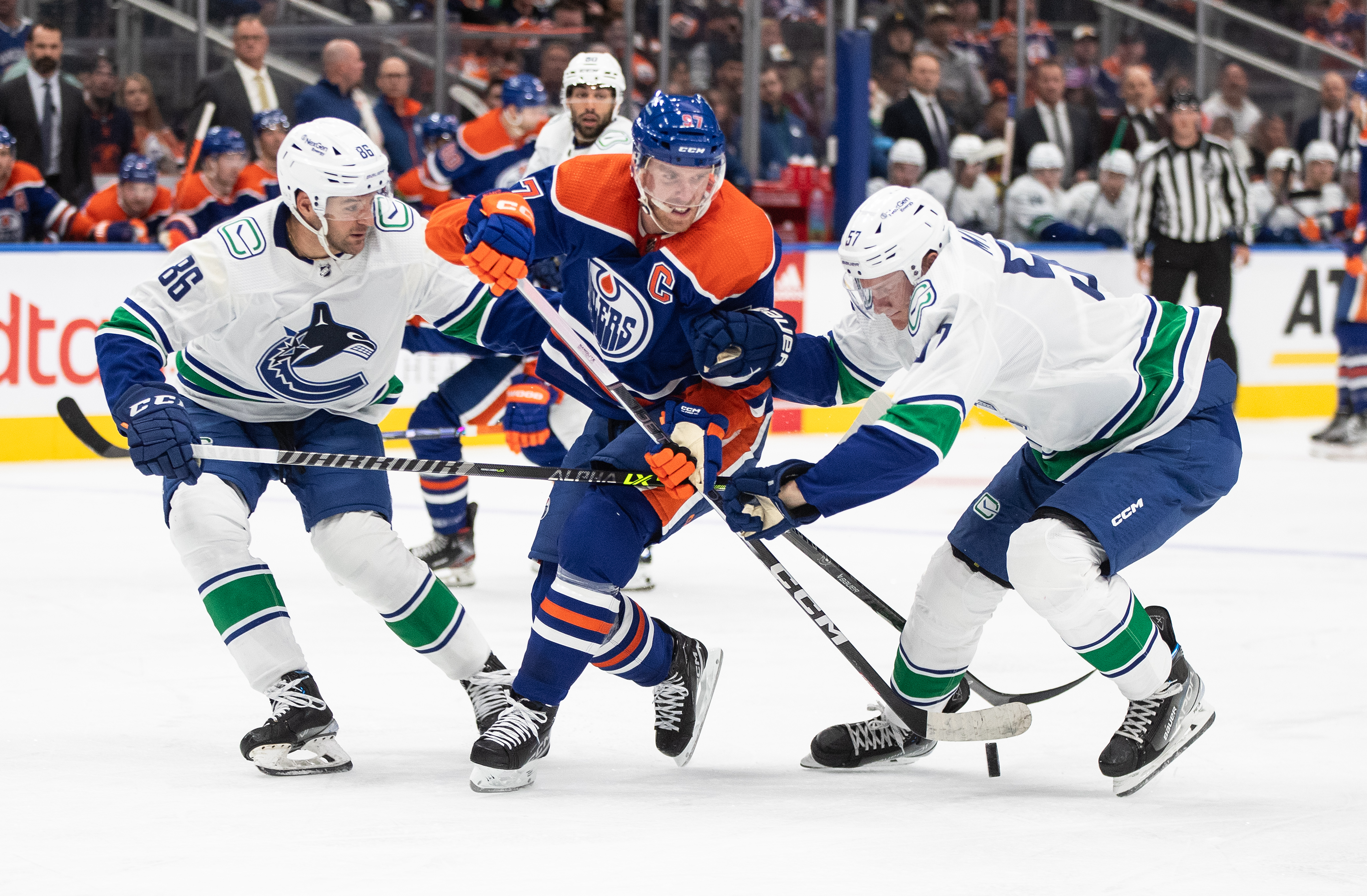 The Oilers carried the play in the first period, but despite outshooting the Canucks 10-3, they couldn’t get a puck past Canucks goaltender Casey DeSmith.