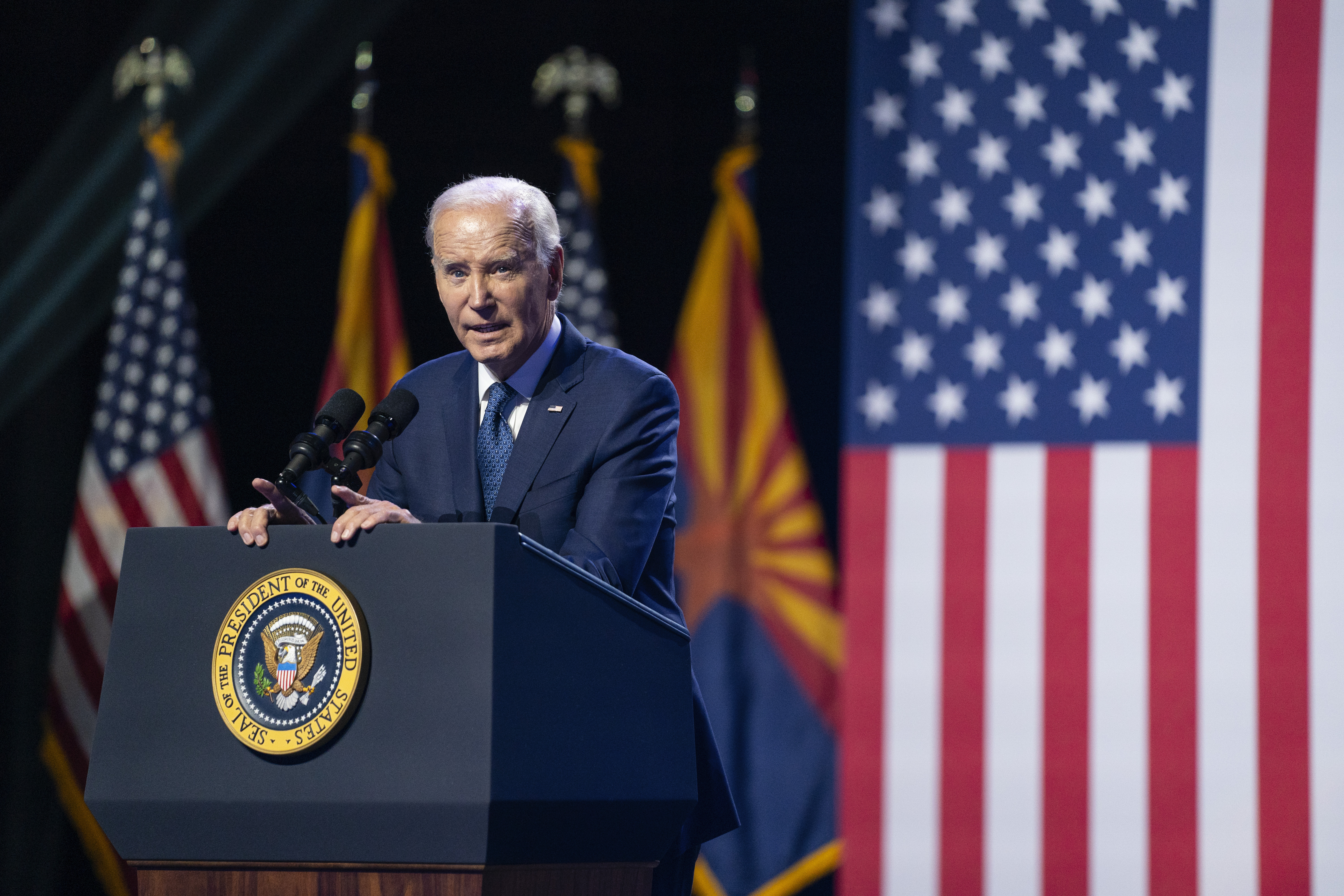 After the speech, Biden spoke at an Arizona fundraiser for his reelection campaign. The attendees included Brittney Griner, the basketball star who was arrested last year at the airport in Moscow on drug-related charges and detained for nearly 10 months.