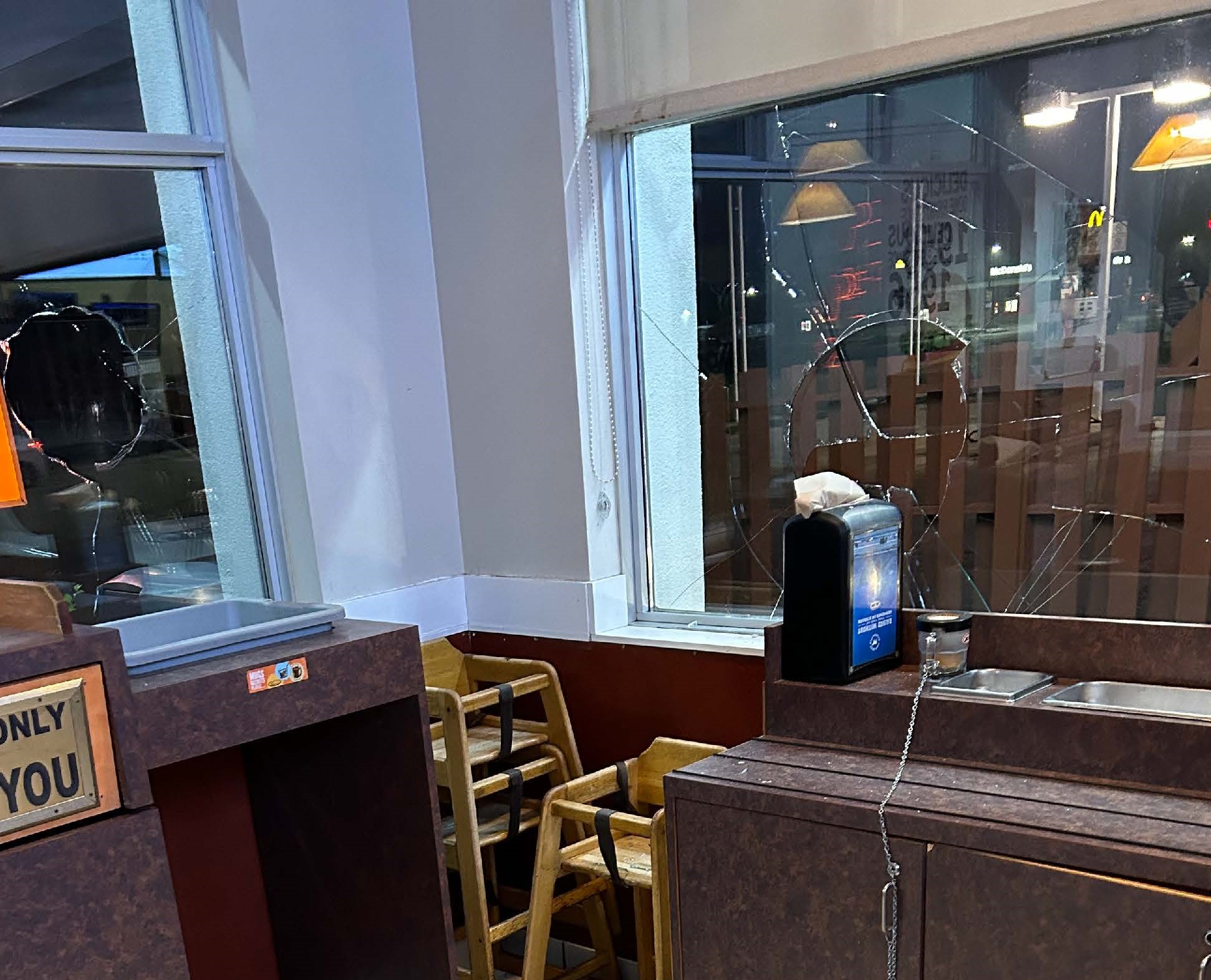 An adult employee was injured by flying glass during the incident and sustained minor injuries. An 8-year-old child in the business was not injured.