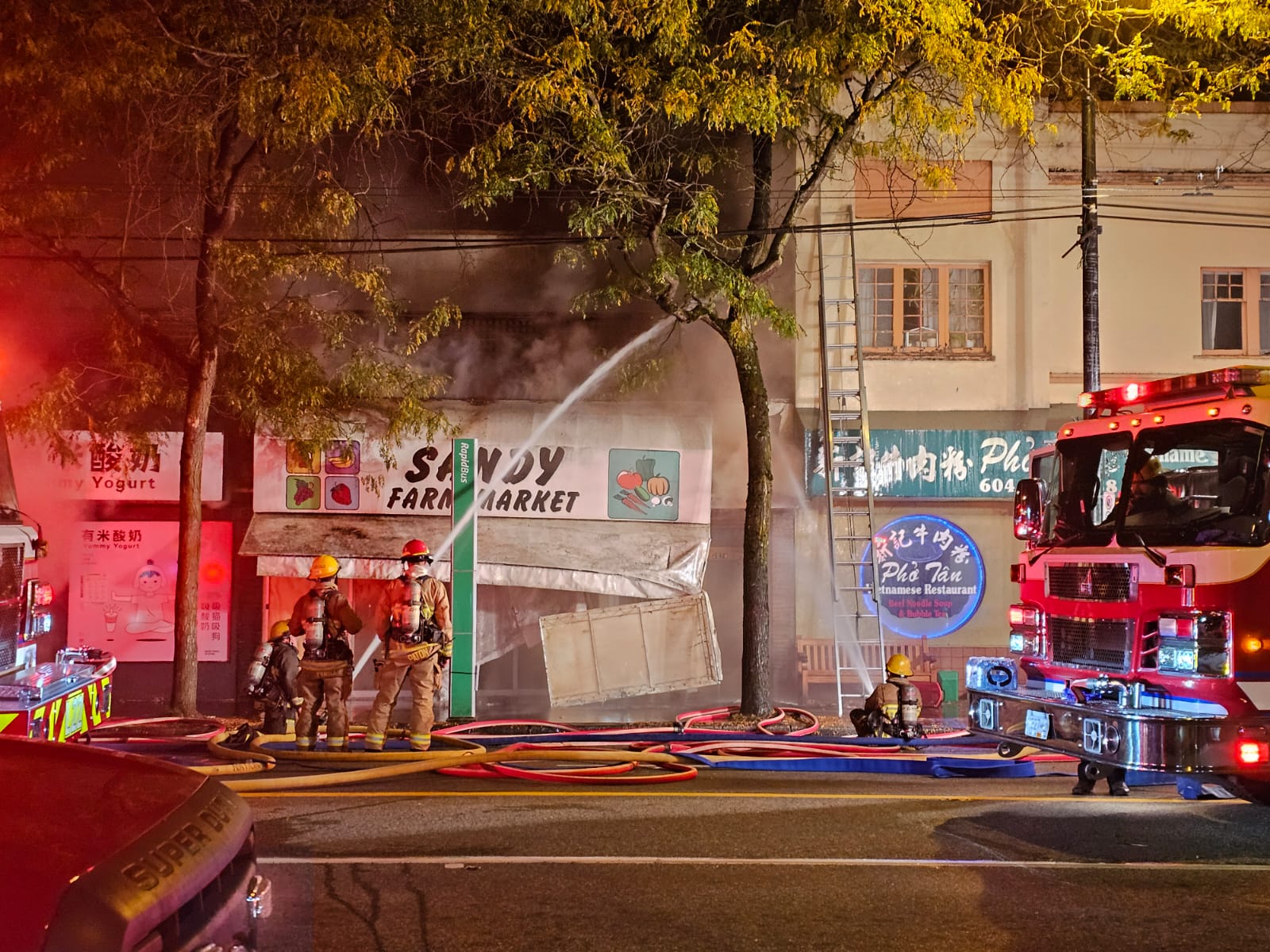 A fire in Kerrisdale has left three people homeless, four businesses destroyed and one with heavy fire damage.
