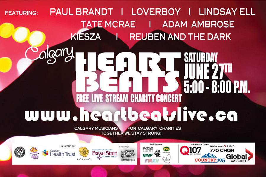 Global Calgary, Global News Radio 770 CHQR, Q107 and Country 105 want to THANK YOU for your generous support for Calgary Heart Beats – a free Live Stream Charity Concert supporting the Calgary Women’s Shelter, Fresh Start Recovery, Homes for Heroes, Not In My City and Calgary Health Trust.