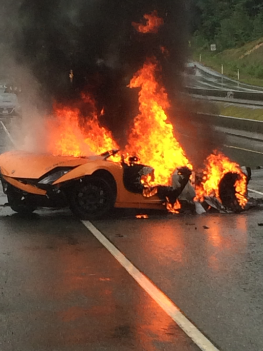 Lamborghini burnt to a crisp on Highway 99, causes traffic delayIt happened at approximately 4 p.m. next to the orange bridge between Squamish and Daisy Lake.May 28, 2016