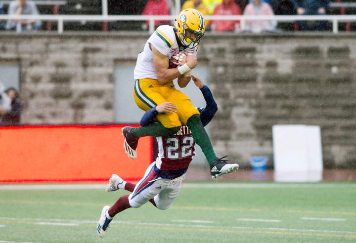 Eskimos end 6-game losing run; eliminate Alouettes with 42-24 winC.J. Gable scored a pair of touchdowns as the Edmonton Eskimos ended a six-game losing streak with a rain-soaked 42-24 victory over the Montreal Alouettes on Monday afternoon.SportsOct 9, 2017
