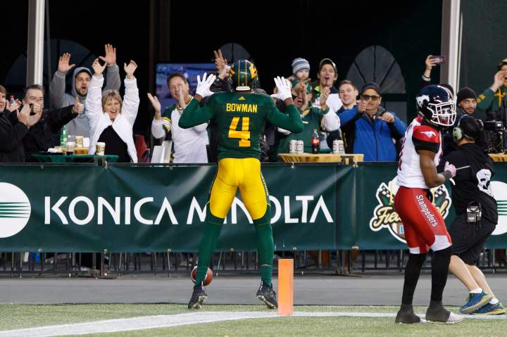 Edmonton Eskimos knock Winnipeg Blue Bombers out of playoffs with winAdarius Bowman and C.J. Gable scored two touchdowns each to push the Edmonton Eskimos past the Winnipeg Blue Bombers 39-32 in the CFL Western Semifinal at Investors Group Field on Sunday.SportsNov 12, 2017