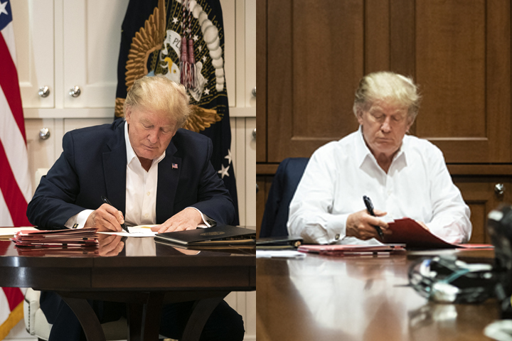 Photos of Donald Trump ‘working’ through COVID-19 spark suspicionCritics say the photos of President Donald Trump may have been staged, based on timestamps linked to the images.TrendingOct 5, 2020