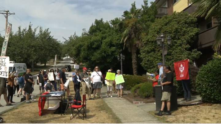 Housing advocates rally over what they call ‘fraudulent landlord-use eviction’ claims in New WestminsterMembers of ACORN allege long-term tenants evictions were made in “bad faith” at properties owned by Sangha and Harron Investments.CanadaJul 29, 2023
