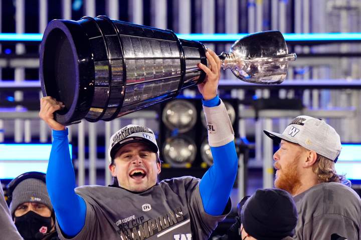Blue Bombers mum on status of injured stars ahead of Grey CupDalton Schoen and Adam Bighill were both dressed in street clothes on the sidelines at Tim Hortons Field on Thursday morning as the Blue Bombers prepared for the championship game.SportsNov 16, 2023