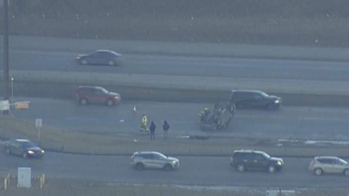 Overturned vehicle halts Deerfoot Trail traffic in north CalgaryA red SUV ended up on its roof underneath the 16 Avenue N.E. overpass, blocking southbound lanes.TrafficFeb 10, 2023