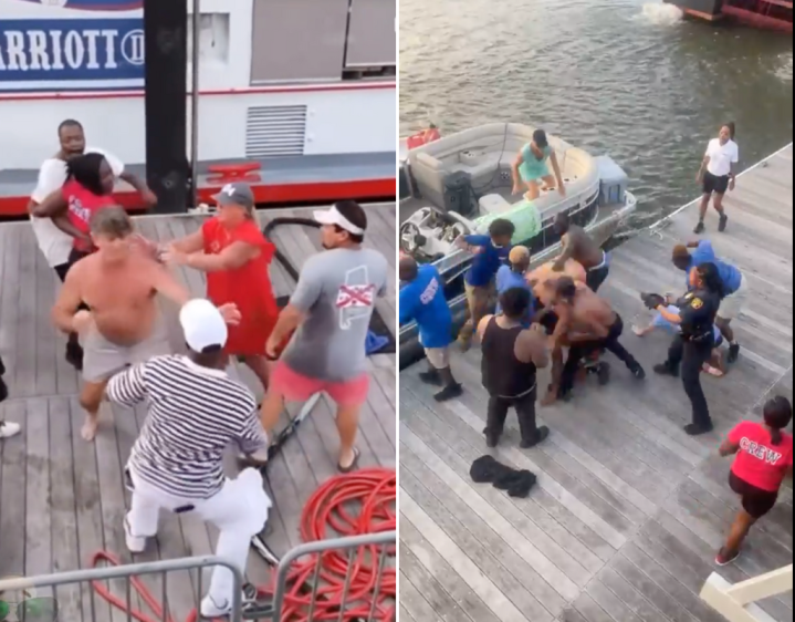 Videos show huge brawl after Black worker mobbed by white boaters in AlabamaPolice have charged 3 men with assault after a massive fight broke out in Montgomery when a group of illegally parked white boaters attacked a Black riverboat captain.U.S. NewsAug 8, 2023