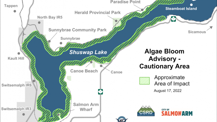 Cautionary health advisory issued for algae bloom in Shuswap Lake in B.C.A warning has been posted about an algae bloom in the Salmon Arm area of Shuswap Lake, with precautions recommended due to health concerns.HealthAug 17, 2022