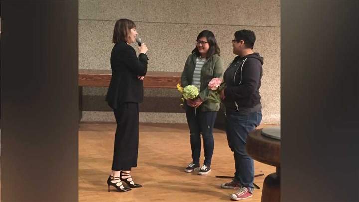 Carrie Brownstein officiates random wedding on book tour stop, Amy Poehler on pianoHave you ever wondered what it would be like to have a celebrity officiate your wedding? One couple just found out thanks to Carrie Brownstein and Amy Poehler.EntertainmentNov 5, 2015