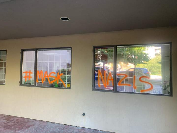 B.C. hair salon owners targeted by anti-mask graffiti"If you want to ask ... why we have a mask policy here, come talk to us. Don't deface our building. So cowardly."HealthJul 23, 2021
