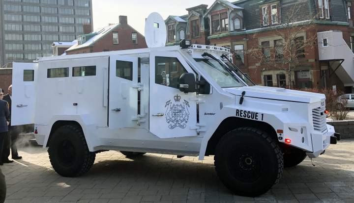 Saint John Police Force unveils armoured vehicle, Rescue OneThe armoured vehicle would be put to use in situations where officers or members of the public could be in danger — such as a high-risk takedown or even severe weather.CanadaNov 14, 2019