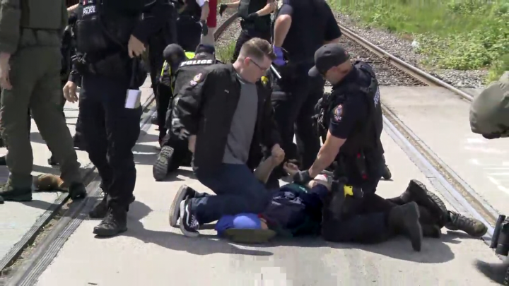 Police arrest 14 at Gaza solidarity rail blockade in VancouverIn a media release, police said the demonstrators refused orders to clear the road and tracks, and alleged some protesters became "hostile" with police.PoliticsMay 31, 2024