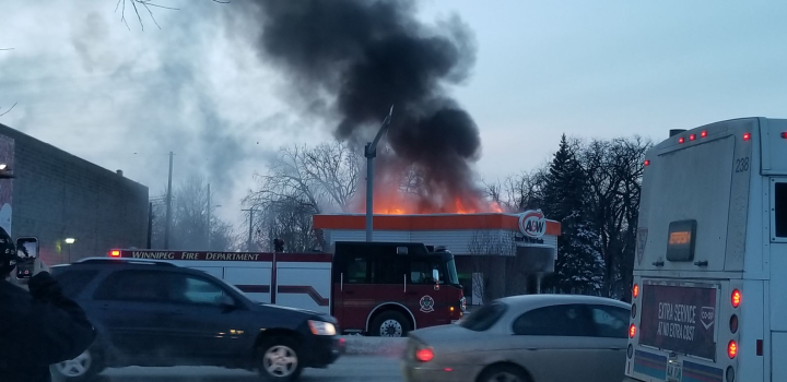 Customers continue to line up at drive-thru as Winnipeg A&W burns to the groundWinnipeg fire crews battled a blaze at an A&W restaurant on Main Street Sunday evening that has left the burger chain location completely destroyed.FireFeb 11, 2019