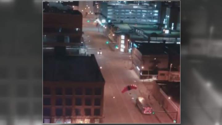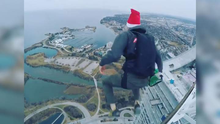 Toronto police warn against BASE jumping after video shows man in Santa hat leaping off condoThe man and the videographer wish each other a merry Christmas before the man jumps off the structure and opens his parachute.CanadaDec 27, 2018