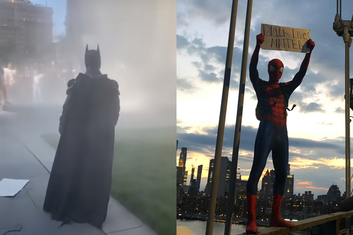 ‘Batman,’ ‘Spider-Man’ offer superhero support to anti-racist protestsSeveral costumed protesters have joined demonstrations against the death of George Floyd.TrendingJun 4, 2020