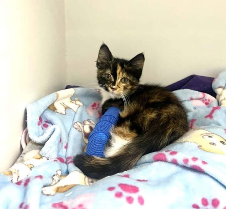 Tiny kitten found on Fort St. John roadside with severe leg woundCola needed to stay overnight in the veterinary clinic, where she was given fluids and pain medication and her leg was X-rayed. She will now need to have it amputated.CanadaSep 30, 2024