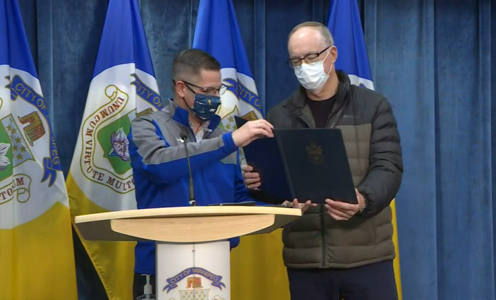 Bombers’ voice Bob Irving receives community service award from mayor, cityIrving was honoured Monday morning by the City of Winnipeg for his lasting impact on the game with a community service award from Mayor Brian Bowman.SportsNov 29, 2021