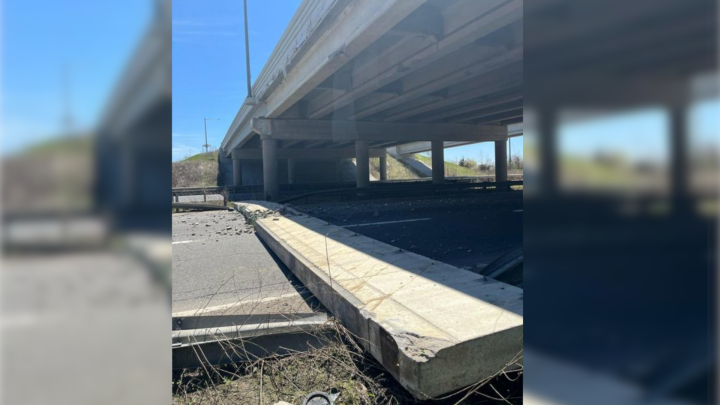 Lanes closed after part of bridge falls onto Highway 403 in Brantford, Ont.OPP say the damage happened Monday afternoon and that some lanes were closed off to traffic. Police say there were no injuries in the incident.TrafficMay 9, 2022