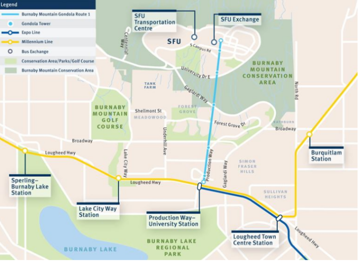 City of Burnaby backs gondola proposal for Burnaby MountainThe municipality has endorsed the Route 1 option, running from the Production Way-University SkyTrain station to UniverCity and Simon Fraser University.TrafficJan 28, 2022