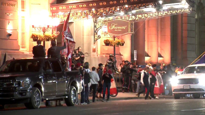 5 people arrested at protests in downtown Calgary, 3 charged with assaulting peace officerFive people were arrested, four of whom were subsequently charged, in connection with protests downtown on Sunday, according to the Calgary Police Service.CanadaNov 19, 2023