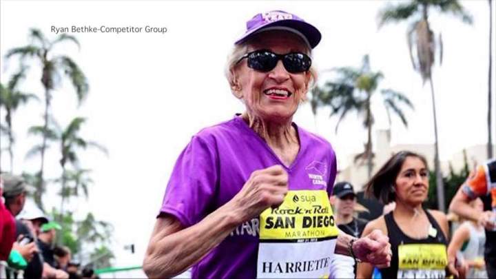 WATCH: 92-year-old woman breaks running record, completes marathonA 92-year-old cancer survivor rocked her way into the record books on Sunday, becoming the oldest woman to finish a marathon.Jun 1, 2015