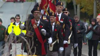 Kingston honours veterans on Remembrance Day mindful of current conflictsRow by row they marched towards the Kinston Cenotaph in a Remembrance Day ceremony on the waterfront. Residents reflected on lives lost in wars gone by, and conflict still raging.CanadaNov 11, 2023