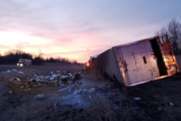 Transport truck rollover on Hwy. 402 spills 6,000 pounds of paintMotorists can expect delays on eastbound Hwy. 402 approaching Hickory Drive as the lanes have been reduced for cleanup, police said.CrimeApr 4, 2019