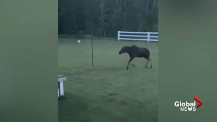 Caught on camera: This B.C. moose loves playing tetherballIn the video, the moose can be seen enthusiastically batting the ball back and forth around the pole with its head and feet.TrendingJun 18, 2021
