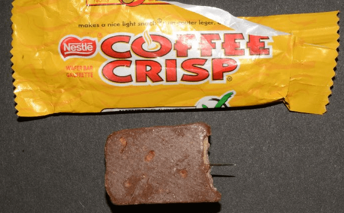 Sewing needle found in Hamilton child’s chocolate bar on Halloween nightAfter a night of trick-or-treating, a Hamilton-area child found a sewing a needle in their chocolate bar. Police confiscated the Coffee Crisp, but have not been able to track which home it came from.CrimeNov 6, 2017