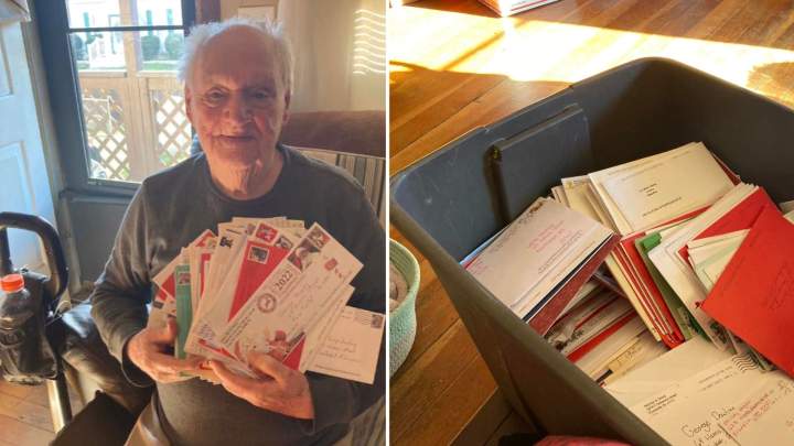 95-year-old man receives 15,000 cards after death of wife, who loved the holidaysChristmas is especially challenging for George Dowling, but his holidays have been made sweeter with messages from around the world.TrendingDec 13, 2022