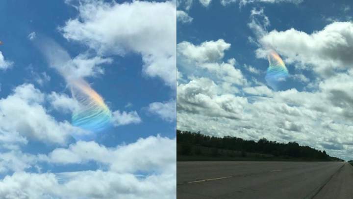 Manitoba family gets highway light show with iridescent cloud spottingAccording to Environment and Climate Change Canada, the rainbow of colours the duo caught a glimpse of was an iridescent cloud — a colourful optical diffraction phenomenon.WeatherJun 10, 2020