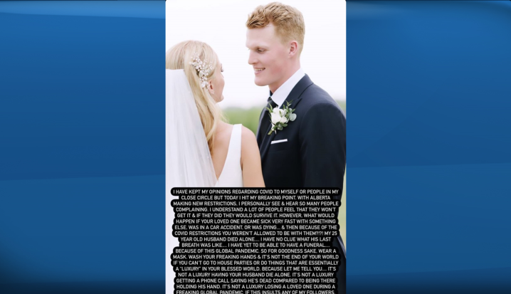 ‘My 25-year-old husband died alone’: Wife of late Oiler Colby Cave makes emotional COVID-19 pleaThe wife of Edmonton Oilers' centre Colby Cave, who died in April after suffering a brain bleed, wanted people to know how the pandemic is impacting people who can't say a final goodbye to their loved ones.CanadaNov 13, 2020
