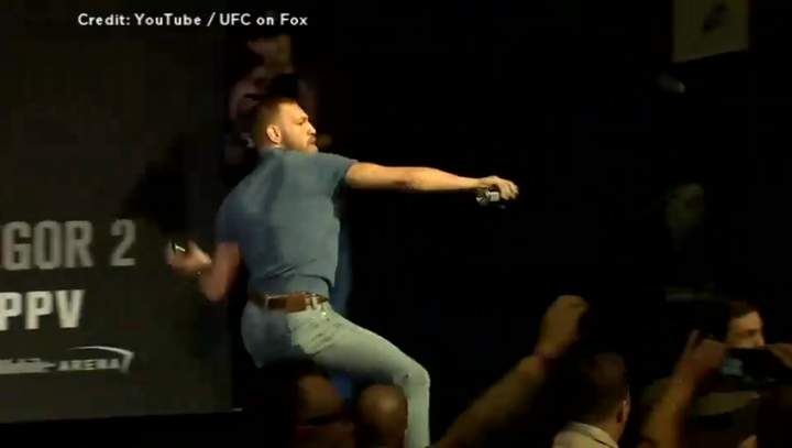 UFC 202 press conference cancelled after Connor McGregor, Nate Diaz hurl water bottles at each otherA press conference for UFC 202 went off the rails as main event fighters Connor McGregor and Nate Diaz began hurling expletives - and then water bottles - at each other.SportsAug 18, 2016