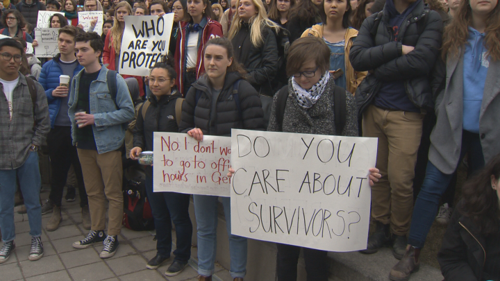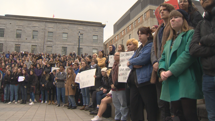 ‘We’re here to learn, not to face harassment’: McGill, Concordia students stage walkoutStudents from McGill and Concordia universities walked out of class Wednesday to protest the way sexual misconduct allegations are handled.EducationApr 11, 2018