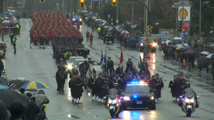 In pictures: Emotional memorial for fallen Abbotsford officer John DavidsonThousands of first responders, some from as far away as the U.S. and U.K. filled the streets of Abbotsford, Sunday to honour Const. John Davidson.Nov 19, 2017