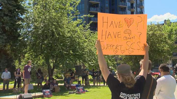‘In the depths of a crisis’: Calgarians show support for consumption site at rallyPeople rallied in Central Memorial Park for the Calgary Day of Action on Saturday, calling on the government to boost harm reduction services as the opioid crisis continues.HealthJun 26, 2021