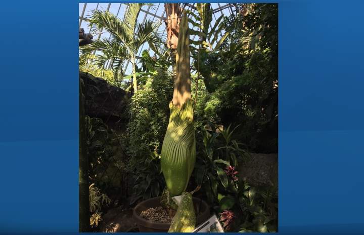 Gagnus, Edmonton’s new corpse flower, is in bloom at Muttart ConservatoryEdmonton's newest corpse flower now has a name — and just in time too, because the stinky plant went into bloom Friday morning at the Muttart Conservatory.EnvironmentMay 25, 2018